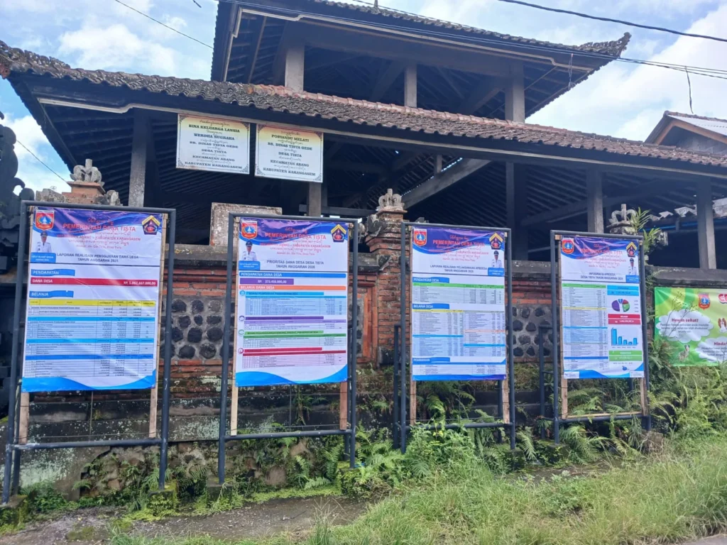 Pemasangan baliho merupakan kewajiban pemerintah desa sesuai regulasi untuk menyosialisasikan rencana anggaran tahunan. Baliho ini dipasang di lokasi strategis, seperti depan kantor desa, agar mudah dilihat oleh warga yang melintas. Kegiatan serupa sering dilakukan di desa-desa lain di Bali