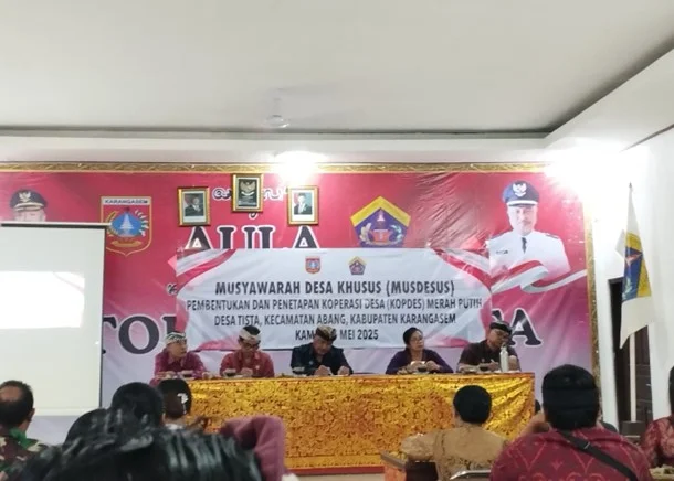 Kegiatan diawali dengan Musyawarah Desa Khusus (Musdesus) yang secara khusus membahas pembentukan dan penetapan Koperasi Desa Merah Putih Desa Tista. Musdesus adalah forum mufakat yang melibatkan seluruh elemen masyarakat desa, perangkat desa, Badan Permusyawaratan Desa (BPD), dan tokoh masyarakat untuk menyepakati bentuk koperasi, nama, visi, misi, serta arah usaha yang akan dijalankan. Dalam kesempatan ini, seluruh peserta merumuskan langkah-langkah konkret pembentukan koperasi sebagai wadah penguatan ekonomi lokal dengan semangat gotong royong, kekeluargaan, dan partisipasi bersama.